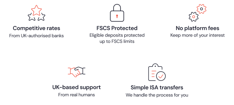 Hold ISA-eligible savings products from multiple UK-authorised banks within a single Cash ISA.